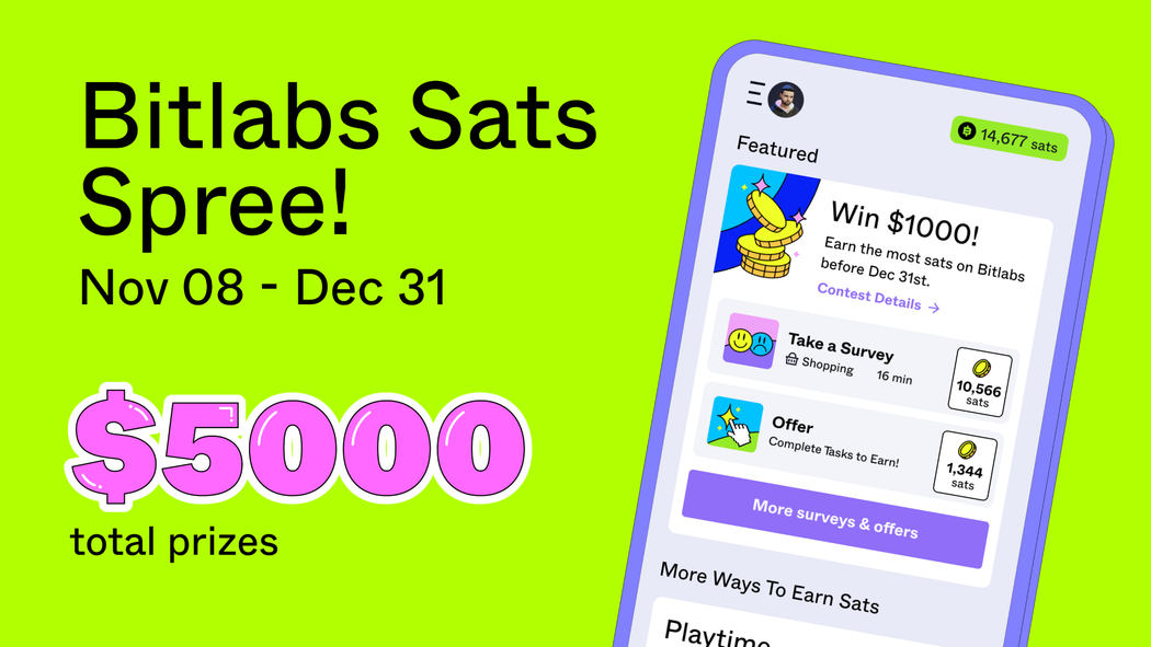 If you've got opinions and a little time to spare, the Bitlabs Sats Spree contest is an open invitation from the ZBD App to turn those thoughts into actual bitcoin—starting November 8th, right through December 31st, 2023.